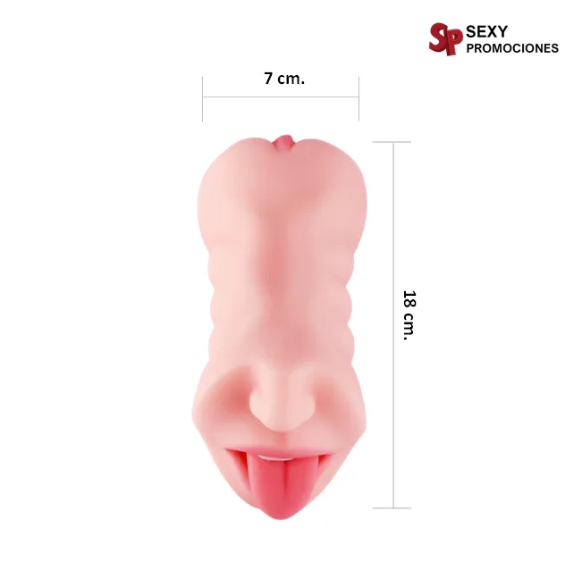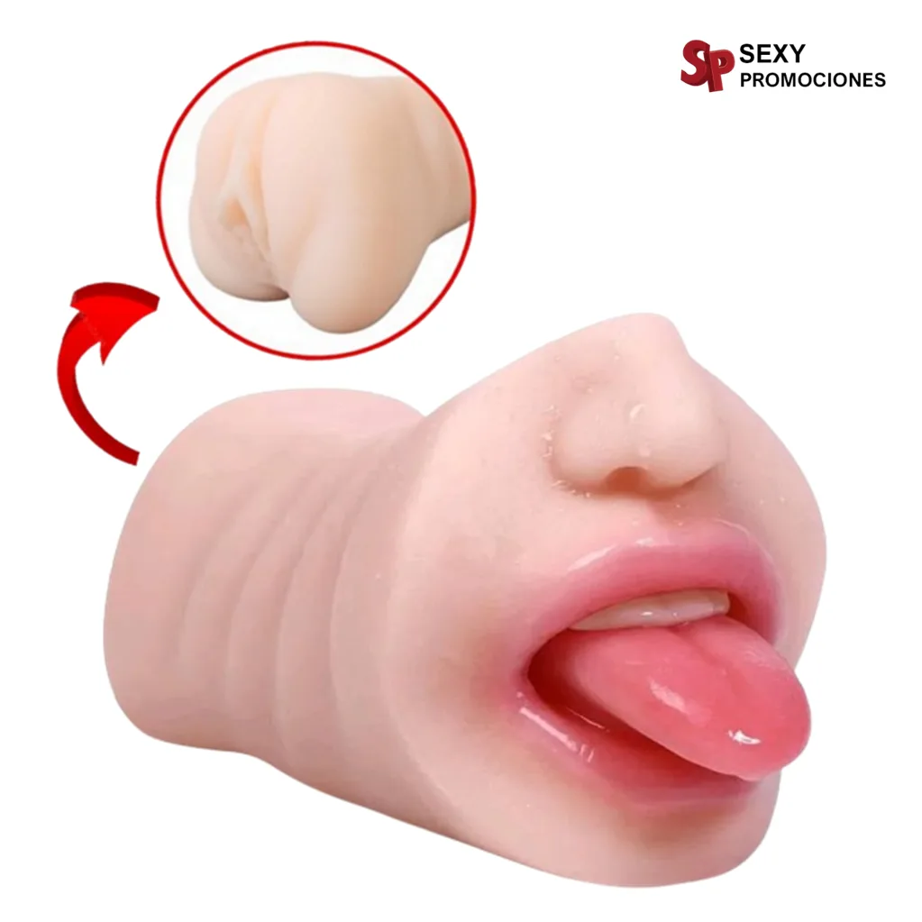 Boca y Vagina masturbadora elaborada en silicona suave, tiene una suavidad increíble, es como si estuvieras introduciendo tu pene en la boca de tu amante